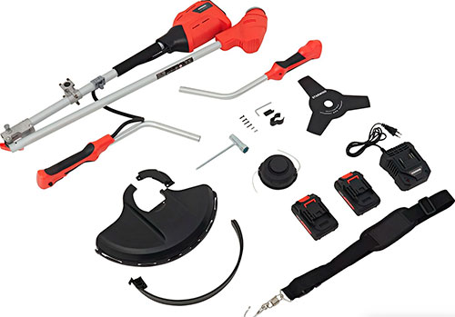 В качестве режущей системы используются леска и ножи, которые позволяют за мгновения адаптировать один триммер под несколько задач. Аккуратно подстригайте газон леской, а с помощью ножей справляйтесь с грубыми сорняками и порослью деревьев.