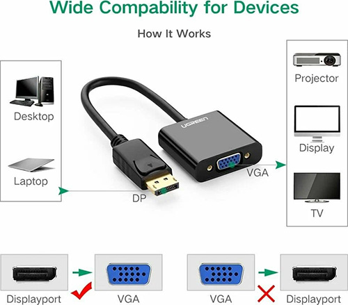 Конвертер Ugreen DP109 (20415) DP Male to VGA Female, черный В наличии. |