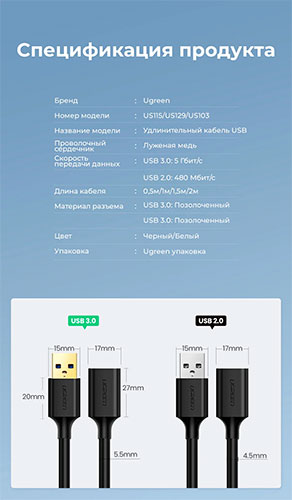 Кабель Ugreen USB 3.0 Extension Male Cable, 3 м, черный (30127), отзывы (0) | Добавить отзыв |
