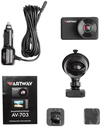 Комплектация: Видеорегистратор, Зарядное устройство, USB Card reader, Кронштейн "Присоска", Кронштейн "3M скотч", Инструкция , Гарантийный талон, Наклейка на лобовое стекло