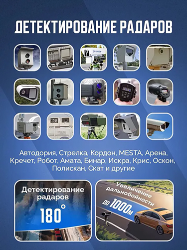 Сигнатурная технология исключает ложные срабатывания. При включении режима радар-детектора «SMART» устройство определяет не только наличие радарного комплекса на пути, но и его тип: КРЕЧЕТ, ВОКОРТ, КОРДОН и др.