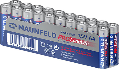 Батарейки Maunfeld PRO Long Life Alkaline AA (LR6), 20 шт., спайка (MBLR6-PB20)