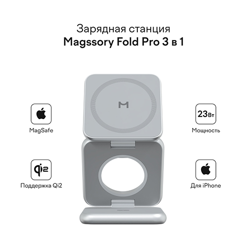 Складное беспроводное зарядное устройство Magssory Fold Pro, 3 в 1, с магнитами, совместимое с Qi2 (silver WCH063) В наличии |