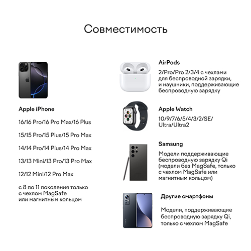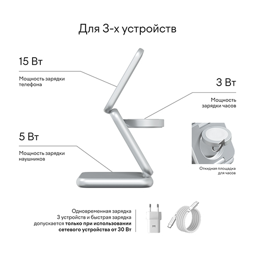 Складное беспроводное зарядное устройство Magssory Fold Pro, 3 в 1, с магнитами, совместимое с Qi2 (silver WCH063), отзывы (0) | Добавить отзыв |