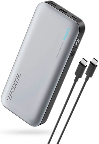 Большая емкость: 25000 мАч — это большой объем энергии, который позволит зарядить смартфон, планшет или другое устройство несколько раз.