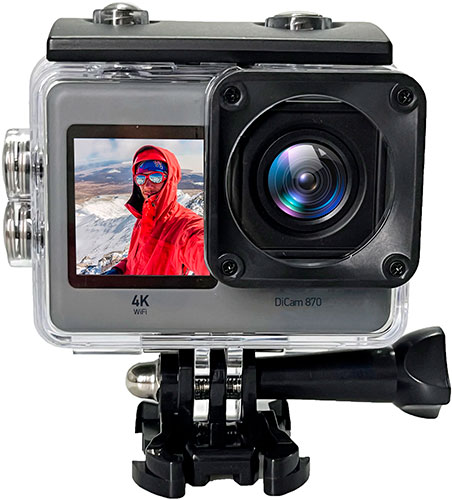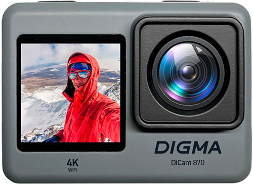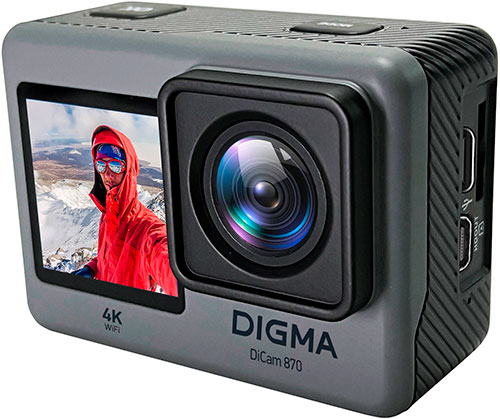 Экшен-камера Digma DiCam 870 – цифровое устройство для фото- и видеосъемки. За счет лаконичного дизайна и приятного серого цвета камера из функционального помощника превращается в стильный аксессуар.