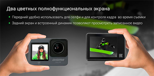 Экшен-камера Digma DiCam 870 – это цифровая техника, которая позволяет сохранить на память самые яркие воспоминания о приключениях и поездках. Передний цветной экран диагональю 1,3” позволяет делать качественные селфи. Встроенный LCD-дисплей с диагональю 2” и разрешением 320 х 240 дает возможность просматривать отснятый материал и видеть даже мелкие детали. Водонепроницаемый кейс помогает проводить съемку под водой: рыбачьте, занимайтесь дайвингом, плавайте.