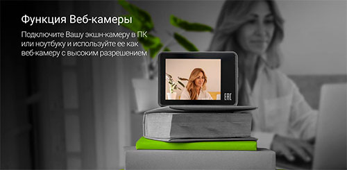 Пультом управления выступает смартфон на базе ОС iOS и Android. Устройство можно подключить в качестве веб-камеры высокого разрешения к ПК или ноутбуку для проведения онлайн-конференций и стримов.