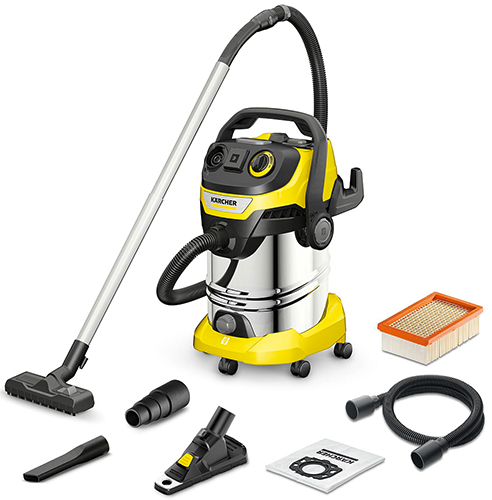 Этот хозяйственный пылесос, обладающий колоссальной силой всасывания при низком энергопотреблении (всего 1300 Вт), поставляется с насадкой-пылеулолвителем, позволяющей высверливать отверстия без распространения пыли. Аппарат WD 6 P S V-30/6/22/T + DDC имеет 6-метровый кабель, всасывающий шланг длиной 2,2 м и 30-литровый мусоросборник из нержавеющей стали с запираемым пробкой отверстием для удобного слива жидкостей. Встроенная штепсельная розетка с автоматикой включения / выключения позволяет подключать к пылесосу электроинструменты (лобзики, шлифовальные машины и т. д.) для непосредственного сбора пыли, образующейся при работе с ними. Силу всасывания можно регулировать поворотным переключателем. Плоский складчатый фильтра легко вынимается без контакта с грязью: достаточно всего лишь отсоединить кассету с ним. При этом эффективная встроенная система очистки фильтра, активируемая нажатием кнопки, обеспечивает восстановление высокой силы всасывания. Для очистки труднодоступных мест и предметов, требующих деликатного обращения, предусмотрена функция выдувания. Благодаря съемной конструкции антистатической рукоятки насадки могут присоединяться непосредственно к всасывающему шлангу. Еще одним преимуществом является возможность компактного хранения шланга, подвешиваемого в верхней части пылесоса, и закрепления насадки для пола вместе со шлангом и удлинительными трубками на время перерывов в работе.