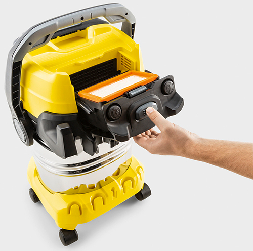Система очистки фильтра, активируемая нажатием кнопки, формирует мощные воздушные импульсы, отделяющие грязь и направляющие ее в мусоросборник. Сила всасывания восстанавливается в считаные секунды.