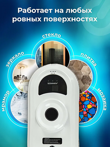 Робот-мойщик окон Sonnen Tech RWC-122 UltraClear, датчик от падения, 26 салфеток, пульт ДУ (456235), отзывы (0) | Добавить отзыв |