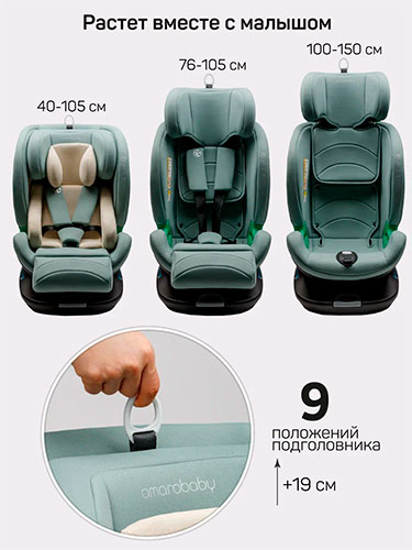 Автокресло Amarobaby Triumph i-Size 40-150 см, зеленый В наличии. |