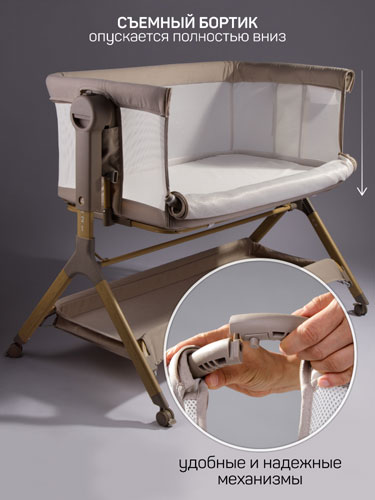 Приставная люлька механическая Amarobaby Care бежевый В наличии. |