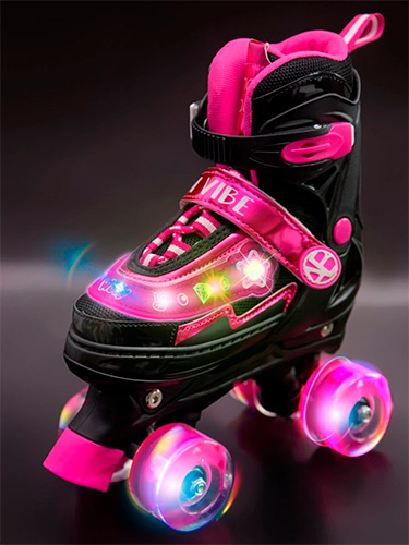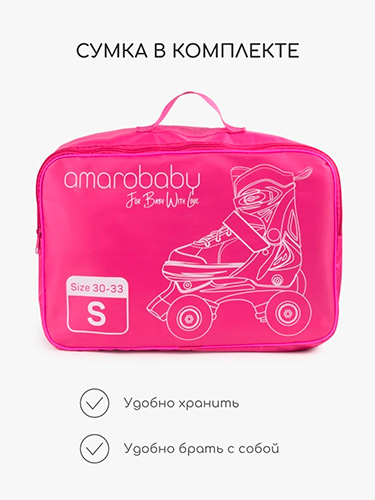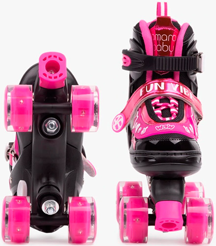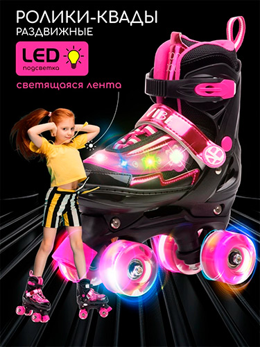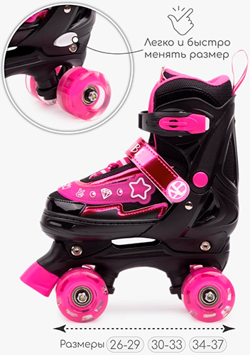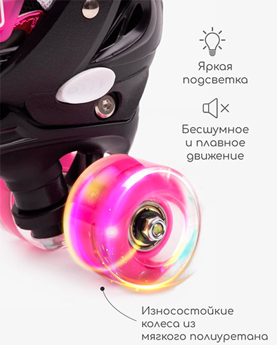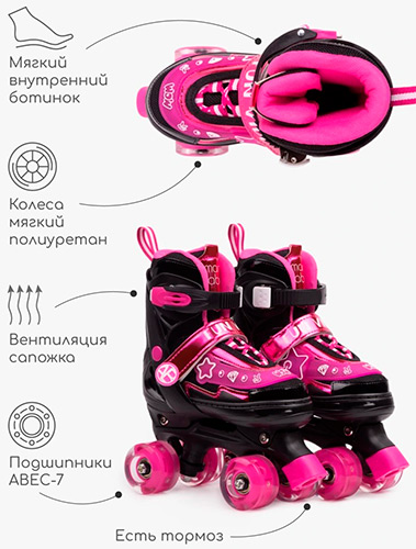 Детские роликовые коньки Amarobaby Glory, раздвижные со светящимися колесами, черный/фуксия, размер 26-29 (AB24-35GL/0925-26) В наличии. |