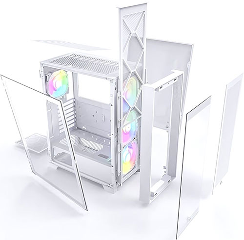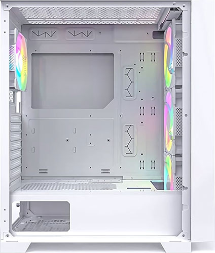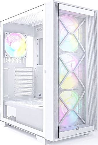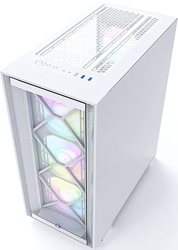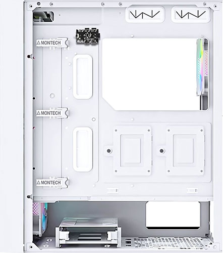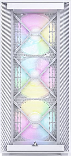 Корпус MONTECH AIR 1000 PREMIUM выполнен в белом цвете, а его дизайн выглядит креативно. Сетчатая лицевая панель не скрывает 3 вентилятора с разноцветной подсветкой. В сочетании с имеющейся перфорацией это обеспечивает эффективное воздухоотведение, что не допускает ситуации с перегреванием компонентов.
