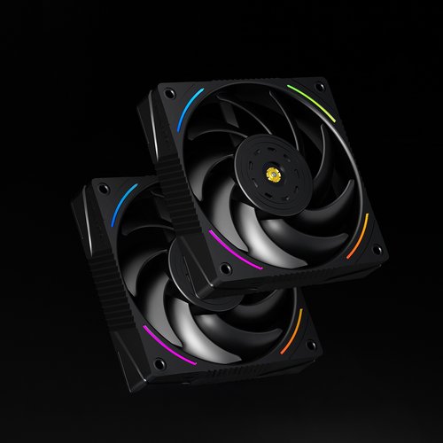 Мощь и тишина — вот принцип работы двух установленных вентиляторов размером 120 на 120 миллиметров. Используя передовые гидродинамические подшипники, они обеспечивают исключительный воздушный поток до 69 кубических футов в минуту, сохраняя при этом очень низкий уровень шума — всего 27 децибел на максимальных оборотах в 2150 вращений в минуту. Управление через четырёхконтактный ШИМ-разъём позволяет системе автоматически и плавно регулировать скорость, балансируя между абсолютной тишиной в моменты простоя и максимальной производительностью под нагрузкой.
