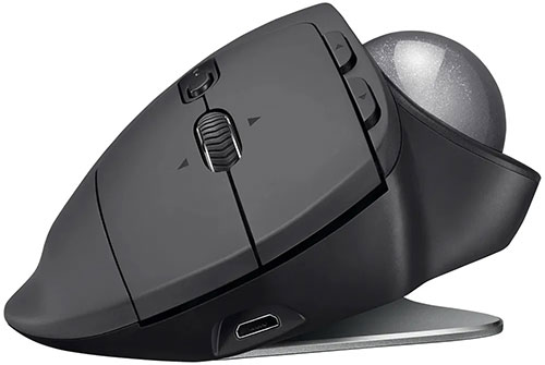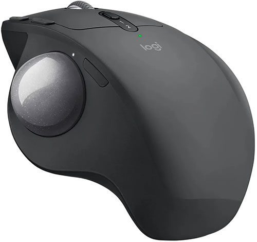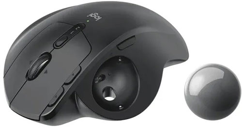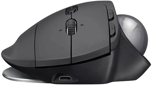 Трекбол беспроводной Logitech MX Ergo 910-005182 с черным корпусом из матового пластика адаптирован для управления правой рукой.