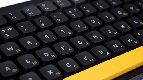 Подключение клавиатуры осуществляется через USB-разъем, а также по Bluetooth или радиоканалу. Это делает ее мобильной и удобной для подключения к ноутбукам. Технология изготовления колпачков клавиш исключает истирание букв и символов на них при интенсивном использовании клавиатуры. Раскладка - русская и английская.