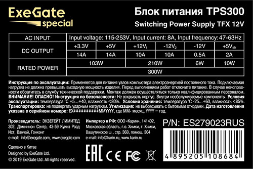 Блок питания ExeGate 300W TPS300 TFX (ES279023RUS), отзывы (0) | Добавить отзыв |