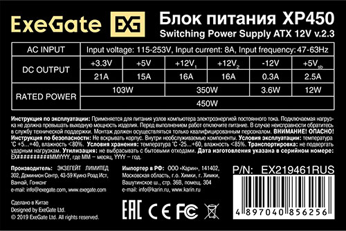 Блок питания ExeGate 450W XP450 (EX219461RUS), отзывы (0) | Добавить отзыв |