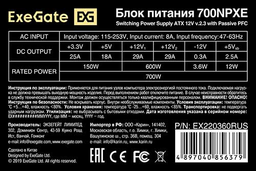 Блок питания ExeGate 700NPXE (EX220360RUS) 700W, отзывы (0) | Добавить отзыв |