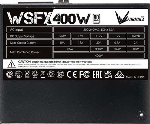 Сертификат 80 PLUS Standard подтверждает высокую эффективность блока питания Formula WSFX-400, что означает экономию энергии и снижение счетов за электроэнергию. Вы можете быть уверены, что ваша система будет работать стабильно и без сбоев при использовании этого блока питания.