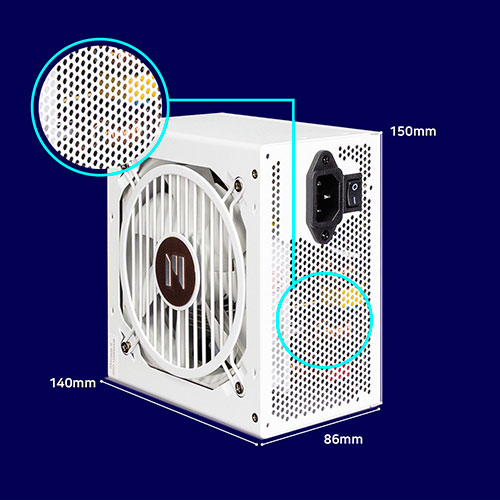 Для обеспечения исключительной стабильности и долговечности инженеры Zalman оснастили GigaMax III активным корректором коэффициента мощности (PFC), который оптимизирует потребление энергии из сети, снижая нагрузку на электросеть и ваши счета за электричество. Эффективность блока подтверждена не только сертификатом 80 PLUS Bronze, но и более строгим стандартом Cybenetics Silver, что говорит о его превосходной энергоэффективности в реальных условиях работы. Низкий уровень шума достигается за счёт качественного 120-миллиметрового вентилятора, который обеспечивает интенсивный поток воздуха для охлаждения компонентов, сохраняя тишину даже под нагрузкой. Уровень акустического шума соответствует сертификату LAMBDA Standard ++, что делает его одним из самых тихих решений в своём классе.