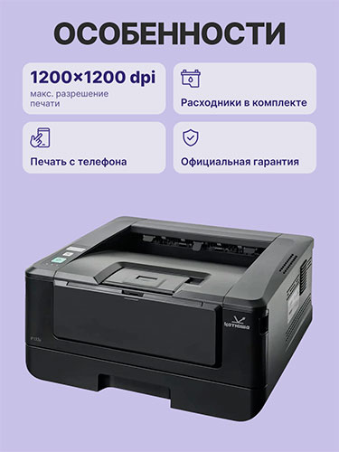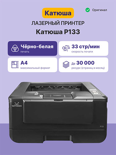 Принтер Катюша P133 - это идеальное устройство для тех, кто ценит качество печати и надежность. Этот лазерный принтер предназначен для чёрно-белой печати и отличается высоким разрешением 1200x1200 dpi, что обеспечивает четкость и чистоту каждой отпечатанной страницы.