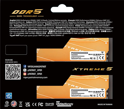 Оперативная память Patriot Memory Viper XTREME 5 AURUM DDR5 DIMM 32GB (2x16GB) 6000MHz (VXA532G6030K)