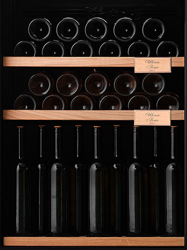 Дверь с тонированным стеклом и доводчиком предотвращает попадание ультрафиолета внутрь шкафа, тем самым сохраняя вкус и цвет вина. Светодиодное освещение по всей высоте двери, с возможностью регулирования яркости, сохраняет электроэнергию, никак не влияя на температуру внутри холодильника.