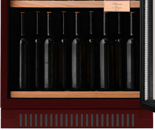 Дверь с тонированным стеклом и доводчиком предотвращает попадание ультрафиолета внутрь шкафа, тем самым сохраняя вкус и цвет вина. Светодиодное освещение по всей высоте двери, с возможностью регулирования яркости, сохраняет электроэнергию, никак не влияя на температуру внутри холодильника.