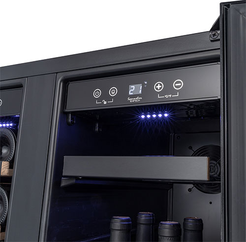Винный шкаф Temptech SOM2D60DRB с дверцей из черного стекла предлагает две температурные зоны для хранения вина.