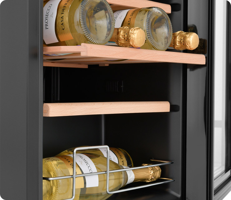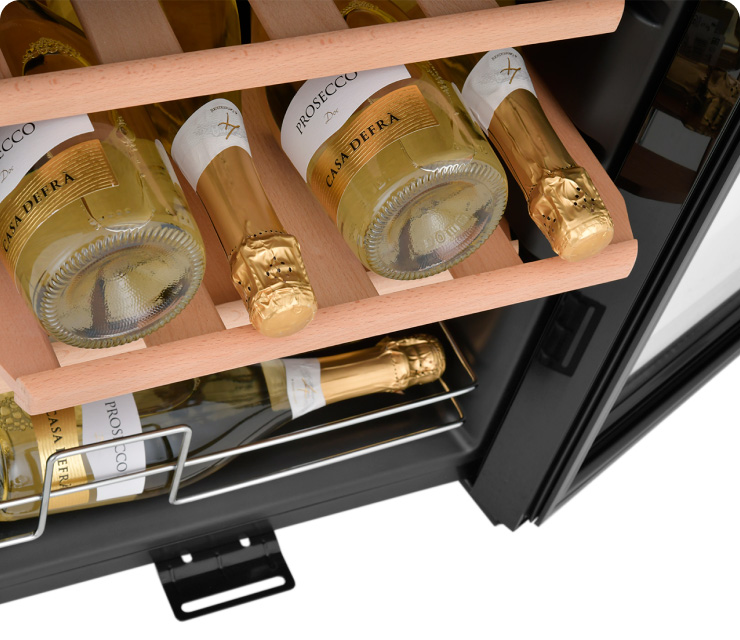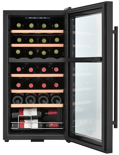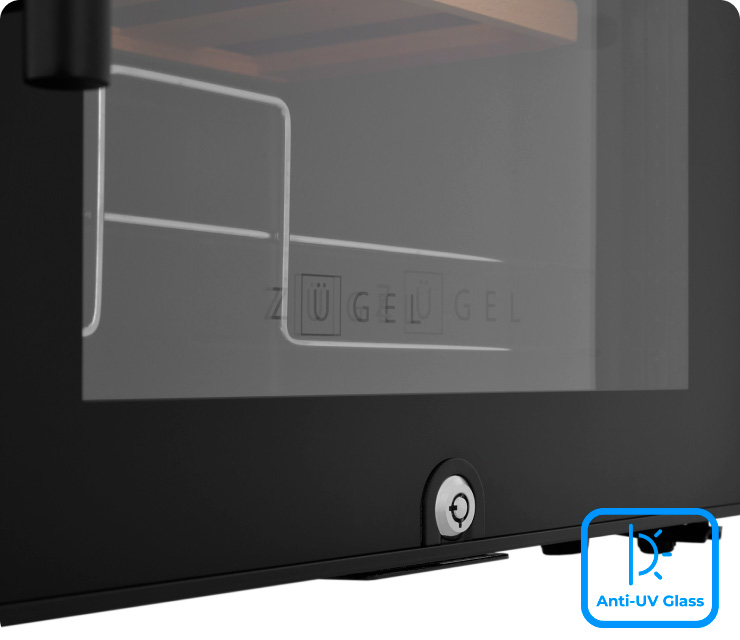 Легкая тонировка стекла защищает вино от воздействия УФ-излучения, сохраняет его качество, придает шкафу стильный элегантный вид