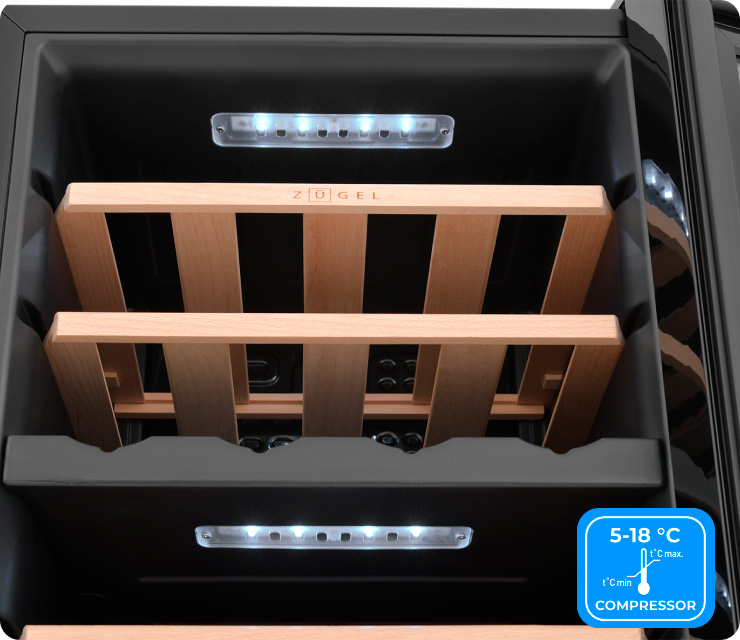 Компрессорный винный шкаф ZÜGEL с передовой технологией поддержания необходимой температуры создает идеальные условия для хранения вина. Эта современная и стильная модель удобно разместится и гармонично впишется в интерьер любого помещения.
