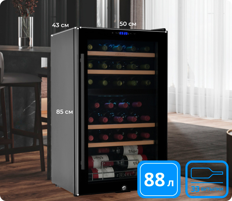 Компрессорный винный шкаф ZÜGEL с передовой технологией поддержания необходимой температуры создает идеальные условия для хранения вина. Эта современная и стильная модель удобно разместится и гармонично впишется в интерьер любого помещения.