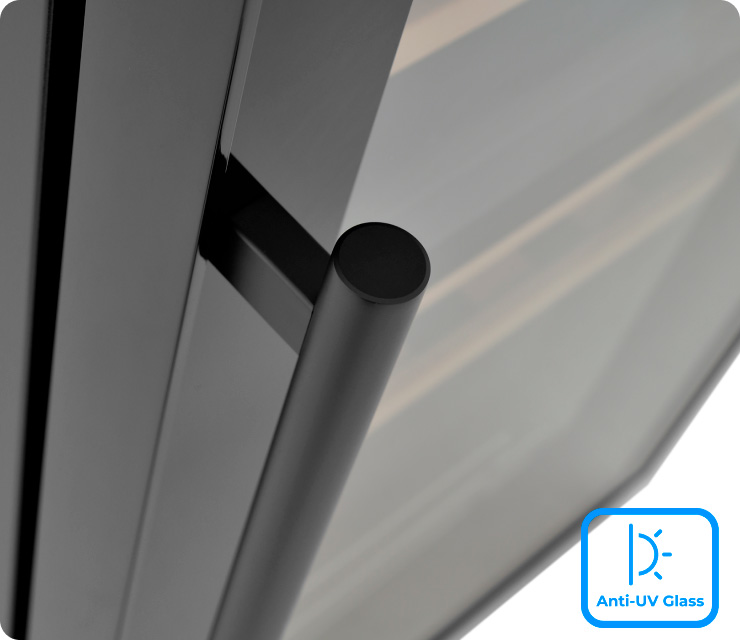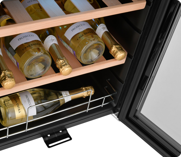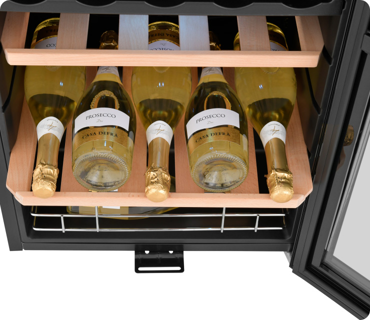 Легкая тонировка стекла защищает вино от воздействия УФ-излучения, сохраняет его качество, придает шкафу стильный элегантный вид