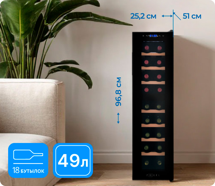 Термоэлектрический винный шкаф ZÜGEL с передовой технологией поддержания необходимой температуры создает идеальные условия для хранения вина. Эта современная и стильная модель удобно разместится и гармонично впишется в интерьер любого помещения.