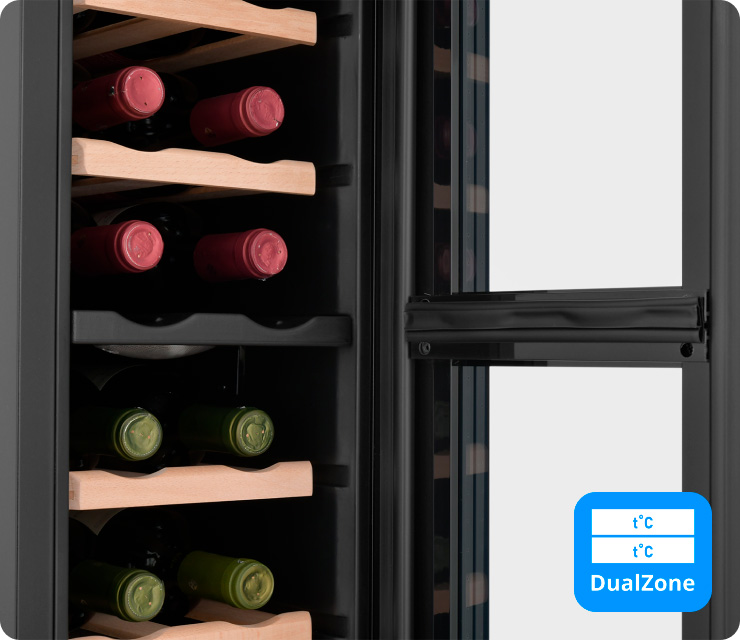Легкая тонировка стекла защищает вино от воздействия УФ-излучения, сохраняет его качество, придает шкафу стильный элегантный вид