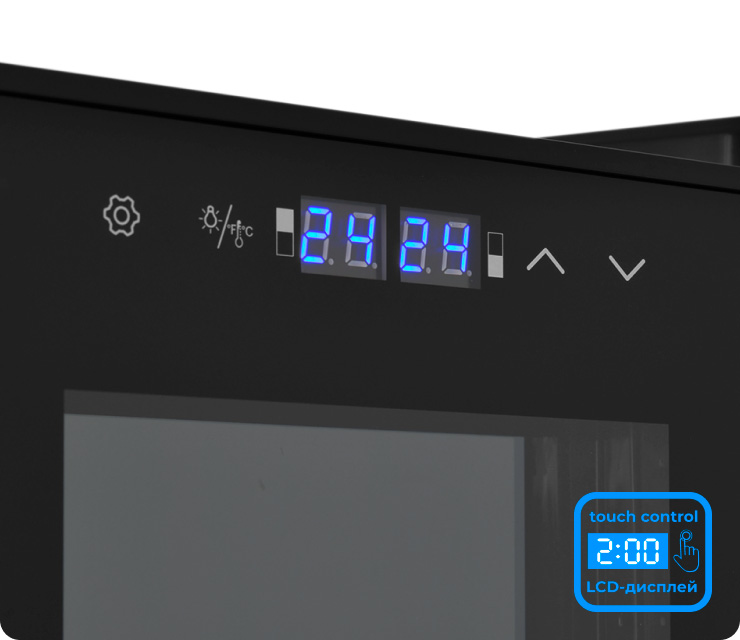 Двойное закаленное стекло дверцы гарантирует поддержание оптимальной температуры внутри шкафа