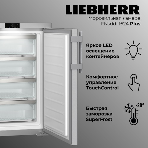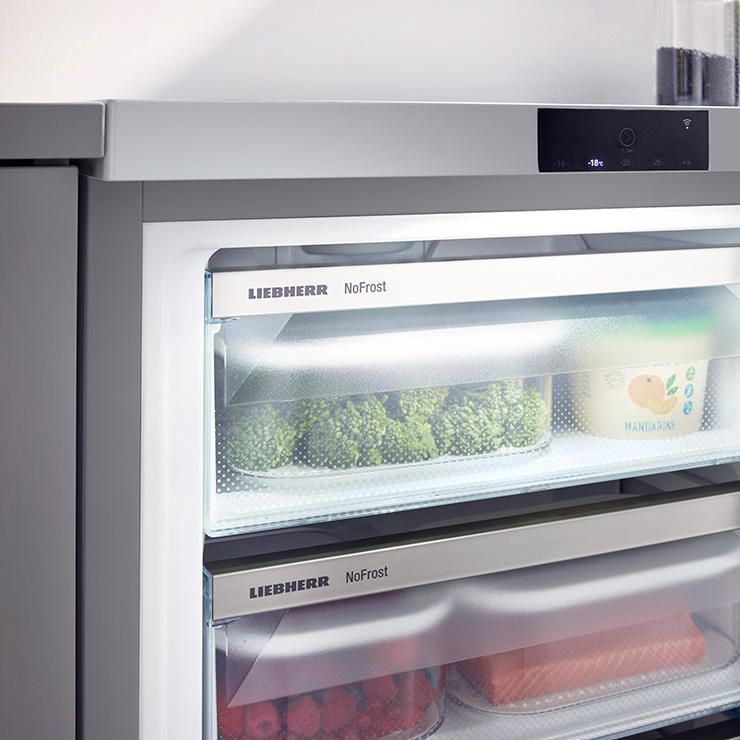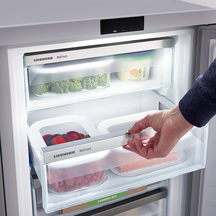 Когда вы открываете выдвижные контейнеры морозильника Liebherr, вас радует не только вид продуктов, но и привлекательное освещение. Этому способствуют мощные, долговечные и экологичные светодиоды. Освещение делает обзор содержимого еще проще и в то же время представляет собой необычный элемент дизайна.