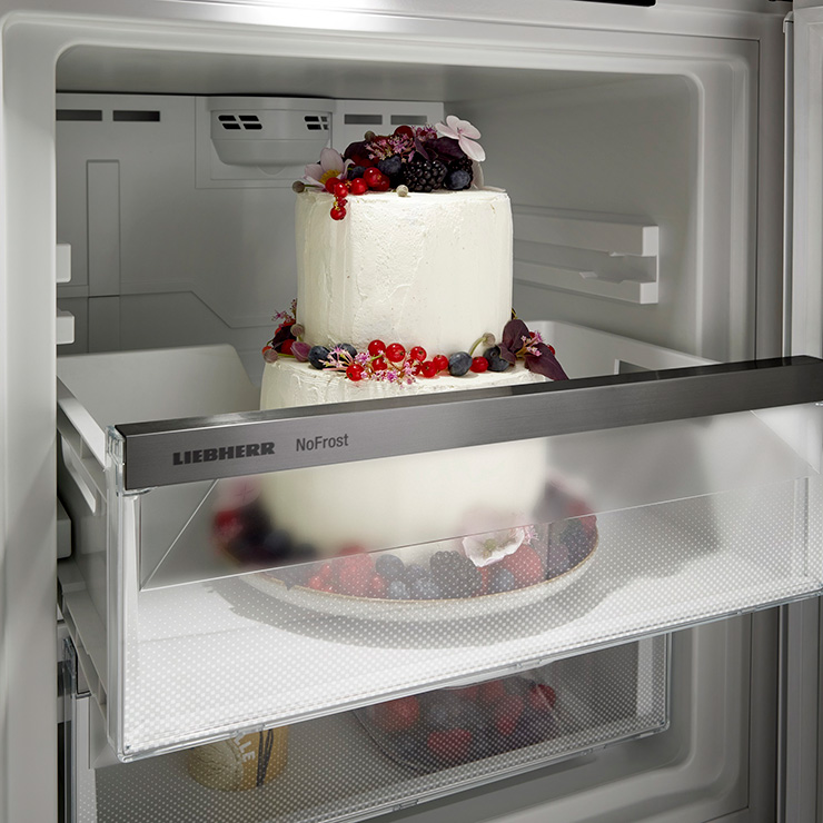 Во всех морозильниках с технологией NoFrost и SmartFrost выдвижные контейнеры и прозрачные полки вынимаются легко и удобно. Это позволяет использовать все преимущества практичной системы VarioSpace, с которой в морозильнике будет достаточно места для размещения замороженных продуктов большого размера