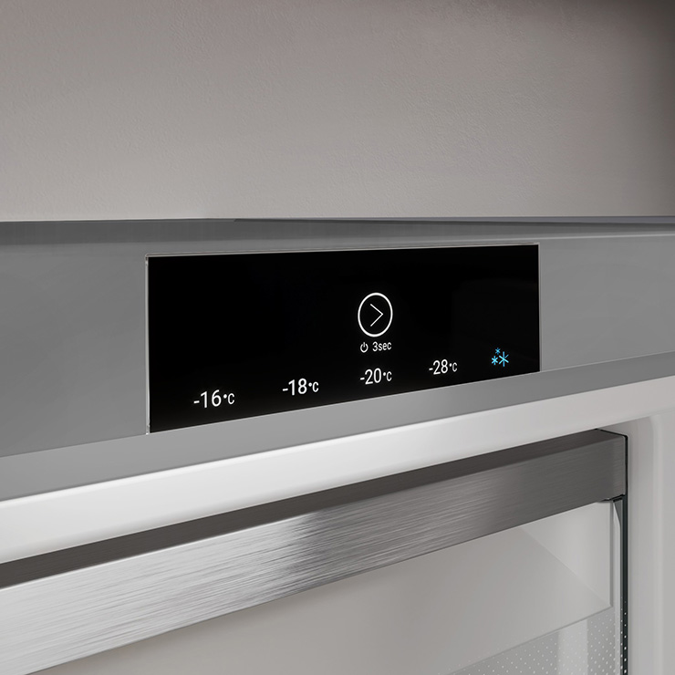 Одним легким касанием можно включить SuperFrost или другие скрытые умные функции, даже не открывая дверь морозильника. TouchControl - это просто и в то же время энергоэффективно.