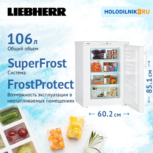 Чтобы обеспечить оптимальную эксплуатацию морозильников даже при низкой температуре окружающей среды, данные устройства снабжены FrostProtect для дополнительной устойчивости к низким температурам (до -15 °C). Даже при температуре ниже +10 °C можно эффективно работать. Благодаря этому можно устанавливать устройства даже в неотапливаемых помещениях, например гаражах.