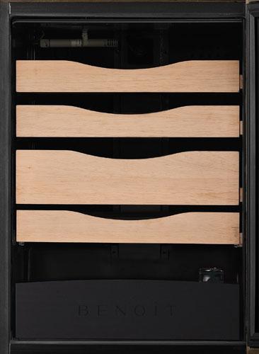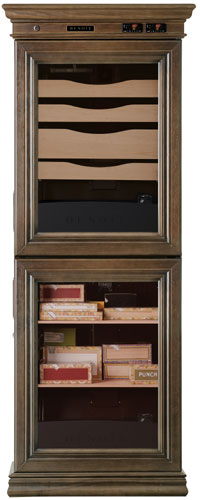 Согласно традициям, хьюмидоры изготавливаются из ценных пород дерева. «Benoit Humidor Cig-280 М» является уникальной экосистемой. Шкаф создан из массива, полки выполнены из древесины испанского кедра – для хранения сигар в коробках или россыпью. «Humidor Cig-280 М» оснащен электронной системой «Онлайн мониторинг», которая позволяет контролировать не только температурный режим внутри и снаружи шкафа, но, и следить за уровнем воды, и многими другими данными. Приложение доступно для IOS и Android.