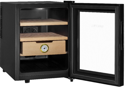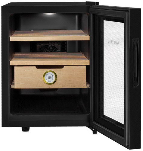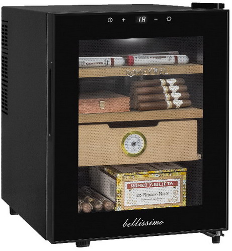 Если вы любитель сигар, то хорошо знаете, как важно хранить сигары в оптимальных условиях влажности. Хьюмидор Meyvel MC-33BT отлично подойдёт для этой задачи. Компактный размеры делают возможной установку, практически в любом желаемом Вами месте. При небольших размера объём составляет 33 литра и позволяет хранить большую коллекцию сигар. В комплекте идут 2 полки и выдвижной ящик, которые можно располагать на разных уровнях. Полки и ящик изготовлены из дерева испанского кедра - отлично подходят для поддержания оптимального уровня влажности и не портятся во время эксплуатации. Дверца с двойным стеклом имеет защиту от УФ лучей и не пропускает излишнего излучения.