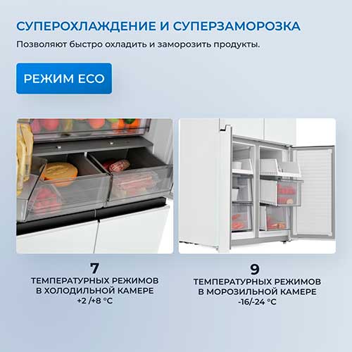 Режим "Суперзаморозка": включение низкой температуры для быстрой заморозки - сохраняет витамины и свежесть продуктов