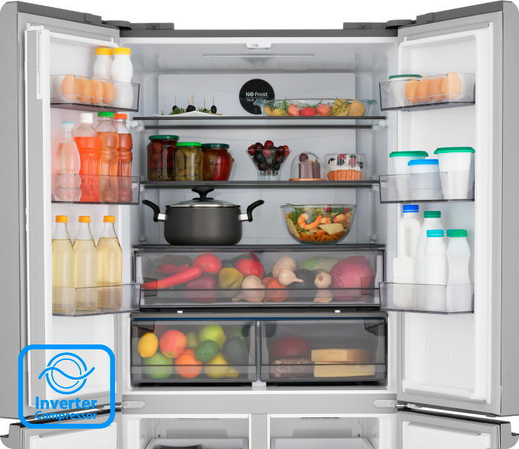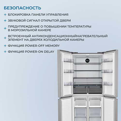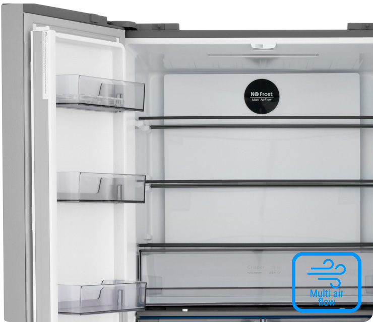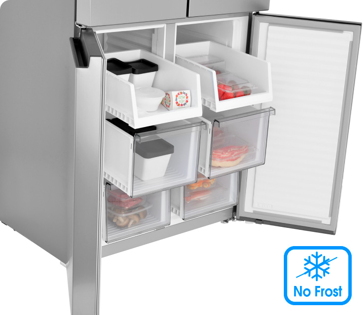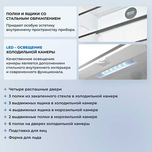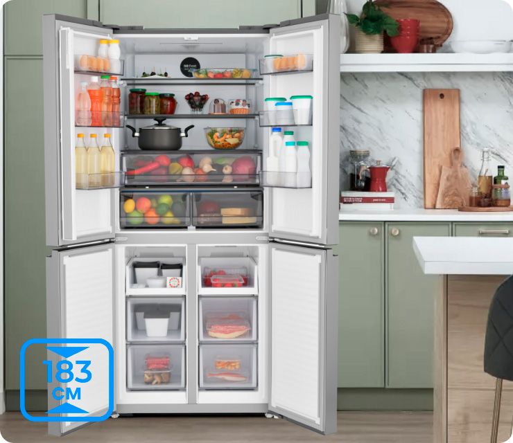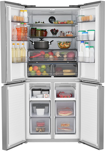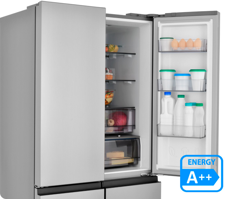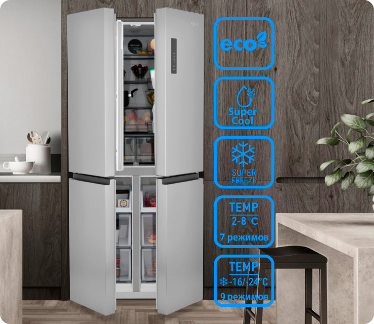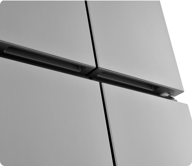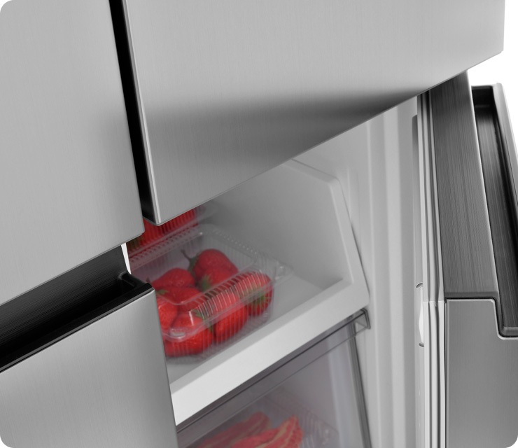 Четырехдверная распашная модель позволяет открывать отдельные внутренние зоны без дополнительных потерь температуры и электроэнергии