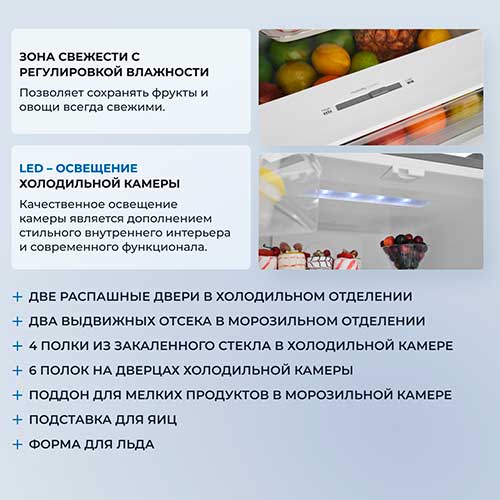 Зона свежести с регулировкой температуры и уровня влажности для хранения различных видов продуктов