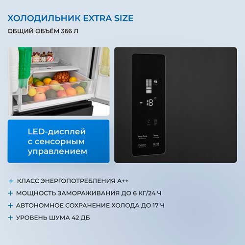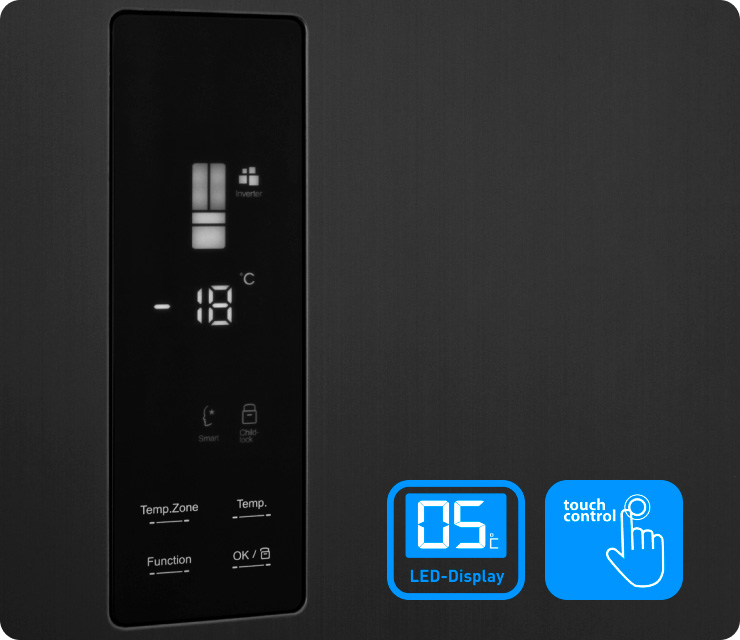Электронное управление осуществляет контроль температуры отдельно в холодильной и морозильной камерах