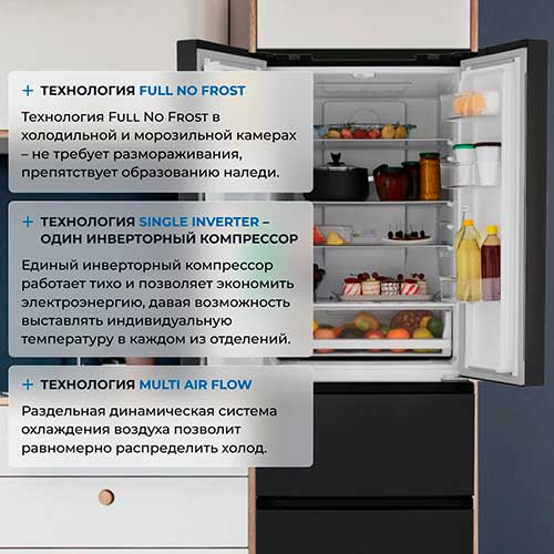 Система охлаждения Multi air flow - система раздельного динамического охлаждения воздуха в холодильной и морозильной камерах для эффективной работы холодильника